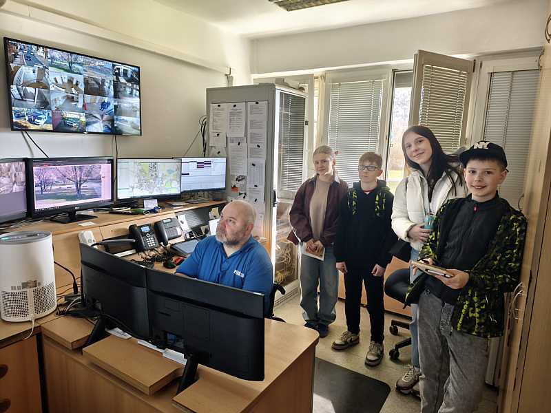 Dne 16. 3. 2026 navštívili studenti Gymnázia Františka Palackého dopravní a kamerové středisko Městské policie Neratovice. V rámci projektu „Poznej své město“ se zástupci GFP dozvěděli informace o provozu dopravního střediska, kde se řeší především dopravní přestupky, ale také o fungování a vytíženosti městského kamerového dohlížecího systému. Operátor jim mimo jiné předvedl ovládání kamer i jejich dosah. Studenti měli řadu zajímavých dotazů, například zda městská policie vyjíždí ke každému oznámení, jak probíhá spolupráce s Policií České republiky nebo jak vypadá běžná směna operátora a strážníka. Získané informace studenti využijí k vytvoření prezentace, kterou následně představí svým spolužákům. Na závěr je zástupkyně velitele městské policie seznámila s historií městské policie, podmínkami pro přijetí strážníka, aktuálním personálním stavem i činností asistentů prevence kriminality. Na závěr si studenti prohlédli služební vozidlo a při odchodu uvedli, že se jim návštěva líbila.